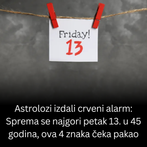 Ukoliko ste ljubitelj astrologije i horoskopskih znakova onda je ovaj tekst upravo ono što tražite. Kroz ovaj članak Vam donosimo upozorenje astrologa koji tvrde da bi predstojeći petak 13. mogao biti jedan od najtežih u posljednjih 45 godina. U nastavku saznajte koja četiri znaka Zodijaka bi mogla osjetiti najveći pritisak i na šta bi trebalo posebno obratiti pažnju…