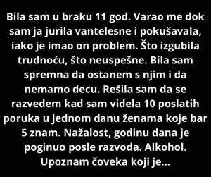 Prelomni trenutak nije se dogodio zbog jedne laži, već zbog njihove gomile. Jedan dan, deset poruka upućenih drugim ženama. Neke od njih su joj bile poznate, sa nekima se susretala u svakodnevnom životu, što je izdaju činilo još bolnijom. Tada je shvatila da više nema snage da zatvara oči i ubeđuje sebe da je to prolazna faza. Razvod je bio bolan i iscrpljujući, ali je u sebi nosio i tračak olakšanja jer je konačno izgovorila istinu naglas.