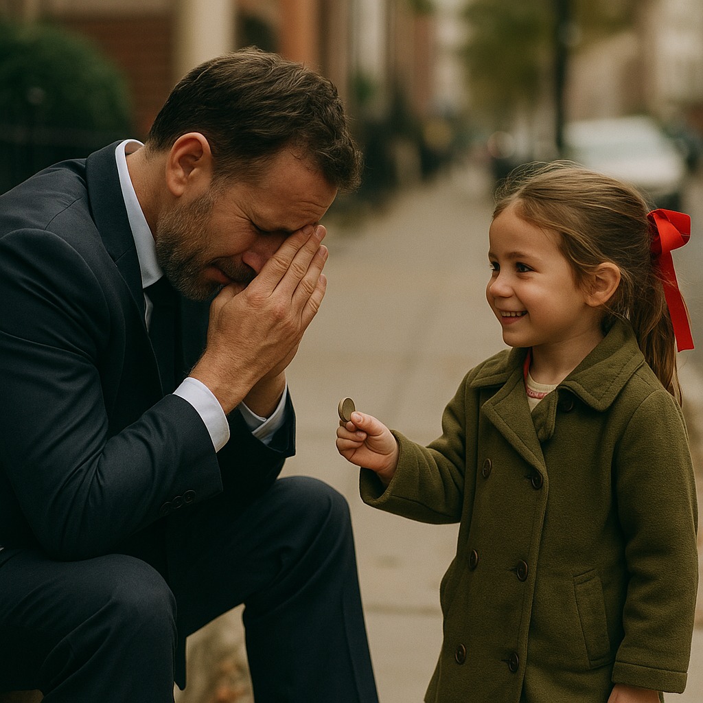 - „Gospodine, jeste li tužni?“ – pitala ga je djevojčica s crvenom vrpcom u kosi, u iznošenom kaputu, ali s osmijehom koji je grijao poput sunca. U ruci je držala mali novčić. Kada joj je rekao da nije tužan, upitala ga je: „A zašto onda plačete?“ Njena nevina iskrenost razoružala ga je. Pružila mu je svoj jedini novčić i rekla: „Kupite nešto slatko, pa ćete se nasmijati.“