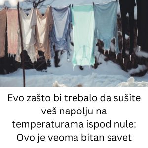 - Na samom kraju, zimsko sušenje veša napolju nije samo trik za uštedu struje, već čin povratka autentičnim i zdravijim navikama. Iako zahteva malo više planiranja i praćenje vremenske prognoze, nagrada u vidu dugotrajne odeće i zdravog doma je neprocenjiva. Sledeći put kada temperatura padne ispod nule, nemojte bežati unutra sa korpom mokrog veša. Iskoristite snagu mraza i dopustite fizici da odradi svoj posao, darujući vam svežinu koju nijedan parfem ne može da zameni.