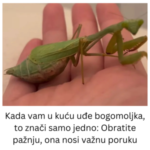 Kada se podvuče crta, poruka koju ovaj insekt nosi je univerzalna i uvek aktuelna. Bez obzira na to koliko je život težak, uvek postoji prostor za spokoj ako smo spremni da ga potražimo. Bogomoljka nas vodi putem samospoznaje, ukazujući na to da je vreme da se posvetimo ličnom rastu i razvoju. Njena prisutnost je dar koji nas podstiče da postanemo bolja verzija sebe, pažljiviji prema svojim potrebama i otvoreniji za prilike koje nam život nudi. Zato, sledeći put kada ugledate ovog zelenog gosta, zastanite i zahvalite na poruci koju vam donosi, jer to može biti početak jednog sasvim novog i mirnijeg poglavlja u vašem životu.