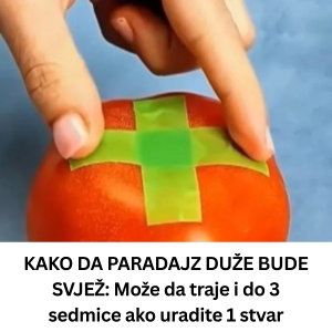 Međutim, postoji vrlo jednostavno rješenje koje može značajno produžiti svježinu paradajza, bez da mu oduzme bogatstvo ukusa. Jutarnji list savetuje da se paradajz čuva na sobnoj temperaturi, a uz to, postoji trik koji može produžiti njegov rok trajanja za čak tri sedmice. Trik je vrlo jednostavan: potrebno je da na bijeli deo paradajza, tačno na onaj deo gde je plod bio vezan za stabljiku, zalijepite dvije trake u obliku krsta.