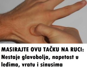 U ovom članku Vam otkrivamo jednostavnu tehniku masiranja koja se fokusira na jednu tačku na ruci, a za koju mnogi tvrde da pomaže kod glavobolje i napetosti u tijelu. U nastavku saznajte gdje se ta tačka nalazi i kako pravilna masaža može donijeti olakšanje…
