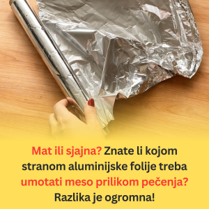• S druge strane, sjajna strana dobija svoju glavnu ulogu tek kada jelo izađe iz rerne. Ako želite da pečeno pile ili pečenica ostanu topli dok gosti ne stignu, tada foliju okrenite tako da sjajna strana bude spolja. Ona će tada sprečavati toplotu jela da napusti posudu. Isti princip važi i za čuvanje svežine namirnica iz frižidera – sjajna strana okrenuta ka spoljašnjosti reflektuje toplotu okoline i pomaže da hrana duže ostane hladna. Kako navodi Kurir, deblja folija je uvek bolji izbor jer je otpornija na cepanje i omogućava hermetičnije zatvaranje posude, što je ključno za zadržavanje prirodnih sokova mesa.
