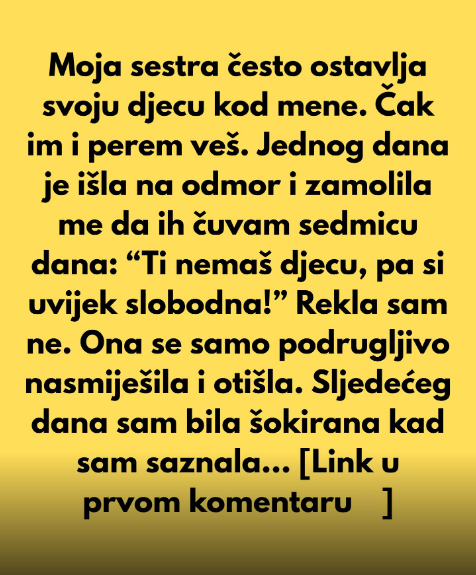 - Naime, sestra joj je tražila da čuva njenu djecu cijeli tjedan, pretpostavljajući da će to biti u redu jer autorica nema vlastitu djecu. Međutim, ona se nije slagala s tom pretpostavkom, jer je osjećala da je njezin život ispunjen vlastitim planovima i željama, koji nisu uključivali stalnu žrtvu za druge.