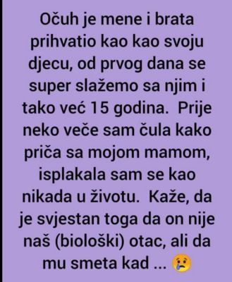 - Ova priča donosi emocionalnu refleksiju o tome kako je očuh postao ključna figura u životu dvoje djece, pružajući im ljubav i podršku bez obzira na to što nije bio njihov biološki otac. Početak ove priče počinje prije petnaest godina, kada je očuh došao u njihove živote, u trenutku kada su bili još samo djeca. Iako je bio svjestan da nije njihov biološki otac, pristupio im je kao da jeste, bez ikakvih razlika.