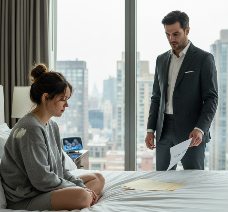 Moj život je tada izgledao kao nepregledni ciklus iscrpljenosti: stalna briga o trojkama, smena dadilja koje nisu mogle da prate tempo, besprekidni plač beba, stalno pranje bočica, nadzor nad njima, mleko po mojoj pidžami i podočnjaci koje nisam mogla da sakrijem. I u tom trenutku, dok sam se trudila da preživim, Mark je ušao u sobu. Izgledao je besprekorno, u skupocenom odelu, s mirisom luksuza i hladnoće. Nije pogledao svoju decu. Nije me pitao kako sam. Samo je bacio fasciklu na krevet.