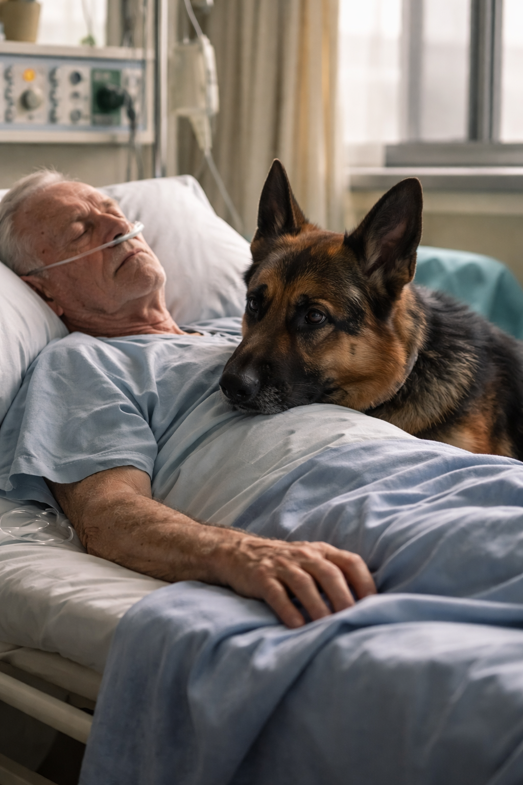 Aparati su pokazali znakove života, a disanje se stabiliziralo. Medicinsko osoblje je brzo reagiralo, vraćajući se u sobu, nastavili su s intervencijama, a Aleks je polako počeo pokazivati znakove oporavka. To je bio trenutak koji je sve prisutne ostavio bez riječi, trenutak u kojem se spojila moć medicine, ljudska hrabrost i nečija ljubav i odanost. Ova njemačka ovčarka nije bila samo pas – ona je bila Aleksov partner, ona je bila njegova veza sa životom, bez koje ne bi bio onakav kakav je bio.