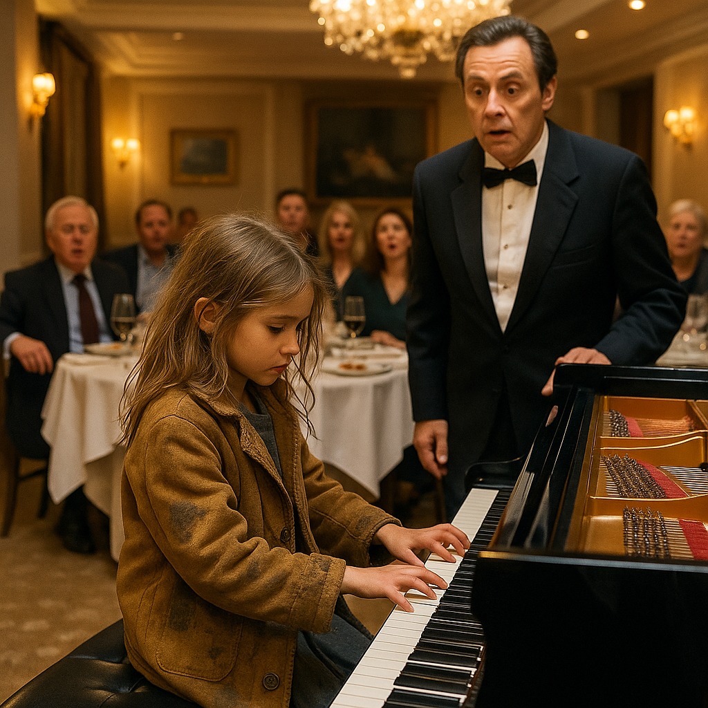 Iako su se mnogi gosti, uključujući poznatog pianistu, smijali i podcjenjivali djevojčicu, ona nije odustala. Njene ruke, premda male i ispucale, dotaknule su tipke klavira s nježnošću i poštovanjem. Zvuk koji je nastao bio je čisti, topli ton, ali istovremeno pun tuge i nostalgije. U trenutku kada je počela svirati, cijeli restoran je stao. Čak su i konobari zamrzli, a gosti su šutjeli, obuzeti emocijama koje je njen nastup izazvao. Zvuci klavira ispričavali su priču o djetinjstvu, o bolu i snovima koji nikada nisu ostvareni.