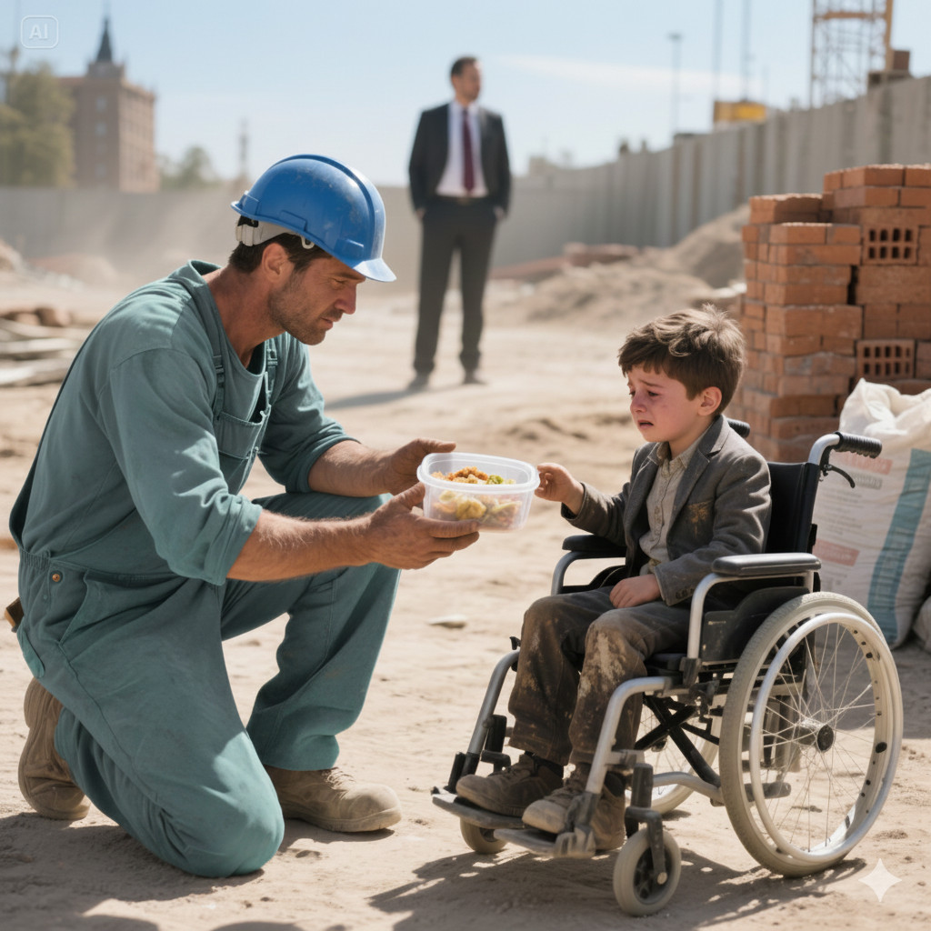 Dok sam radio, primetio sam dečaka u invalidskim kolicima, skrivenog iza paleta cigli. Njegovo lice je bilo smešano sa prašinom i znojem, a oči su mu odražavale strah i očaj. Osećao sam njegovu patnju koja je bila toliko opipljiva da nije bilo moguće proći pored njega, a da se ne zaustavim. U tom trenutku, za mene nije bilo važno ko je on ili odakle dolazi. Bilo mi je samo važno da mu pružim pomoć, jer glad ne bira trenutak za pitanja. Ovaj trenutak nije bio samo susret između dva ljudska bića; bio je to susret između nade i očajanja.