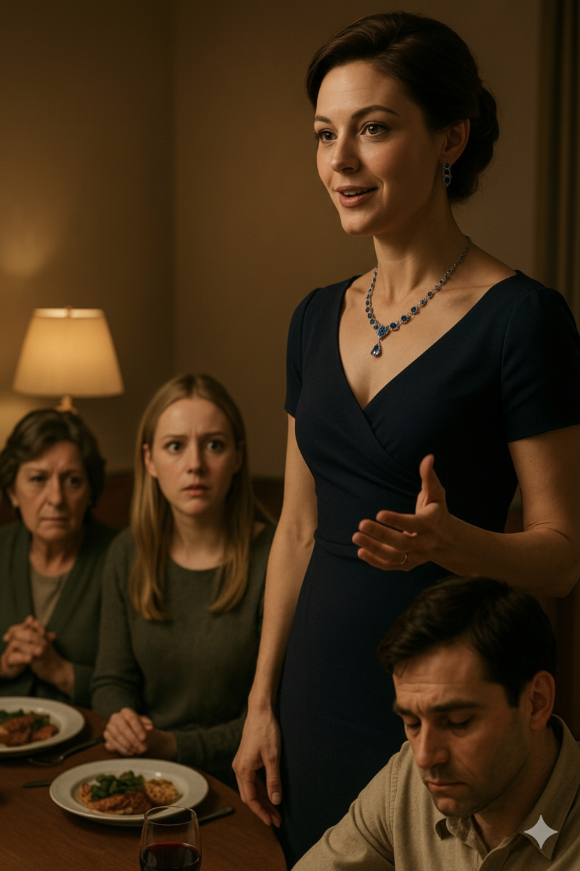 Obiteljska večera koju je Svetlana Andrejevna, svekrva, organizirala povodom godišnjice braka, postala je savršena prilika za Arinu. Dolazak na večeru bio je planiran do najsitnijih detalja: Arina je zakasnila, došla u elegantnoj haljini, s kosom podignutom u savršenoj punđi. Safiri su svijetlili na njenim ušima, a ogrlica oko vrata blistala je poput simbola njene pobjede.