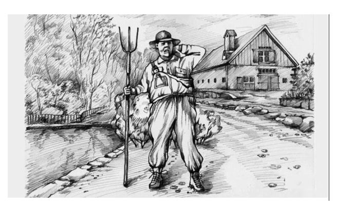 Na prvu, slika deluje sasvim jednostavno. Prikazuje scenografiju seoskog života – seljaka sa vilama, drvećem, kućom i plastovima sena. Međutim, umetnik je vešto sakrio žensko lice koje je integrisano u elemente prirode, čineći ga gotovo neprepoznatljivim. Iako mnogima može delovati kao obična scena iz prirode, samo onaj ko je dovoljno pažljiv i spreman da promeni svoju perspektivu moći će da primeti skriveno lice žene koje je savršeno ukomponovano u slike drveća i senki.