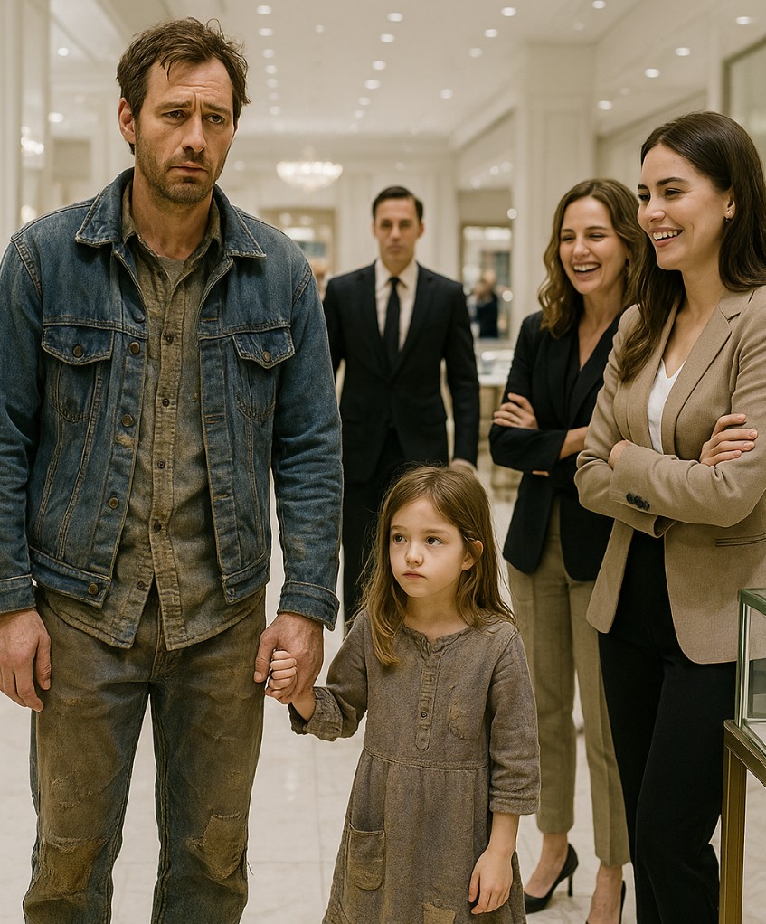 Otac i kćerka, umorni i skromni, dolaze u luksuznu prodavnicu, ali ne da bi kupili skupe stvari. Oni samo žele osjetiti djelić luksuza i sreće za njen rođendan. Međutim, njihova prisutnost izaziva smijeh i podrugljive komentare od strane zaposlenih, koji su sudili prema njihovom izgledu. Iako su ih gledali s prezirom, otac nije odgovarao na uvrede. On je, uzdignut i ponizan, zadržao dostojanstvo pred svojom djevojčicom, iako je bilo jasno da su se osjećali posramljeno zbog nepristojnog ponašanja osoblja.