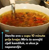 Ukoliko ste ljubitelj kulinarskih poslastica onda je ovo mesto za Vas. U ovom tekstu Vam otkrivamo jednostavan trik koji može potpuno promijeniti aromu i ukus Vaše supe. U nastavku saznajte šta dodati 10 minuta prije kraja kuvanja kako bi miris i ukus osvojili cijelu kuću…