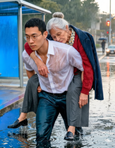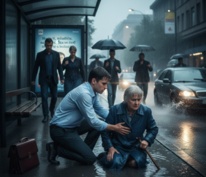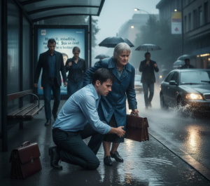- Dok je grad bio obavijen sivilom, a kiša nemilosrdno natapala ulice, Luis je hodao brzo, stežući fasciklu sa dokumentima. U glavi je ponavljao odgovore na moguća pitanja i zamišljao budućnost u kojoj napokon dobija priliku da izađe iz svoje teške situacije. Međutim, nekoliko minuta kasnije, jedan prizor ga je naterao da stane. Na autobuskoj stanici, gotovo nevidljiva za prolaznike, sedela je starija žena. Bila je mokra, promrzla i nije imala snage da ustane. Ljudi su prolazili pored nje kao da ne postoji. U tom trenutku, Luis se našao pred izborom: da li da nastavi dalje i sačuva svoju priliku ili da se okrene i pomogne ovoj nepoznatoj osobi.