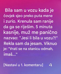 Taj trenutak joj je otkrio nešto vrlo važno. Nikada nije videla tog muškarca ponovo. Da li je bio bezopasan ili ne — nikada neće saznati. Ali to nije bilo važno. Ono što je bilo važno jeste ono što je naučila te večeri: ljubav nije samo u velikim gestama, poklonima i rečima. Ljubav je tiha, postojana prisutnost koja te čuva kad osećaš da te strah može obuzeti.