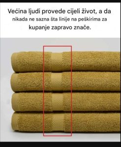 Danas Vam otkrivamo čemu zapravo služe linije koje se nalaze na peškirima za kupanje, a koje većina ljudi nikada ne primijeti. U nastavku saznajte zašto postoje i kakvu praktičnu ulogu imaju u svakodnevnoj upotrebi…